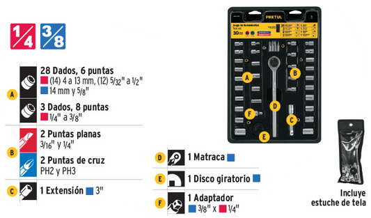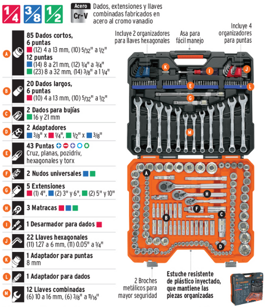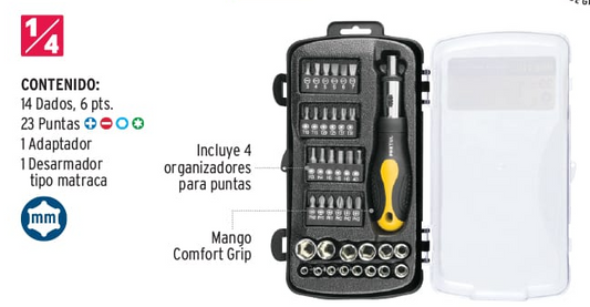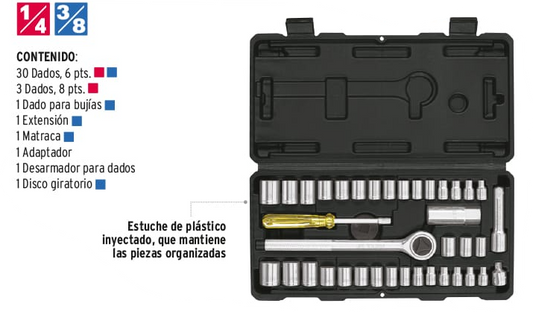JUEGO DADOS CUADRO 1/4, 3/8 Y 1 40 PZS