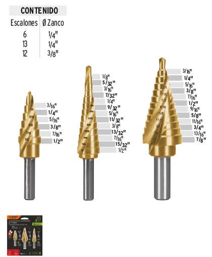JUEGO BROCA 3 PZ ESCALONADA